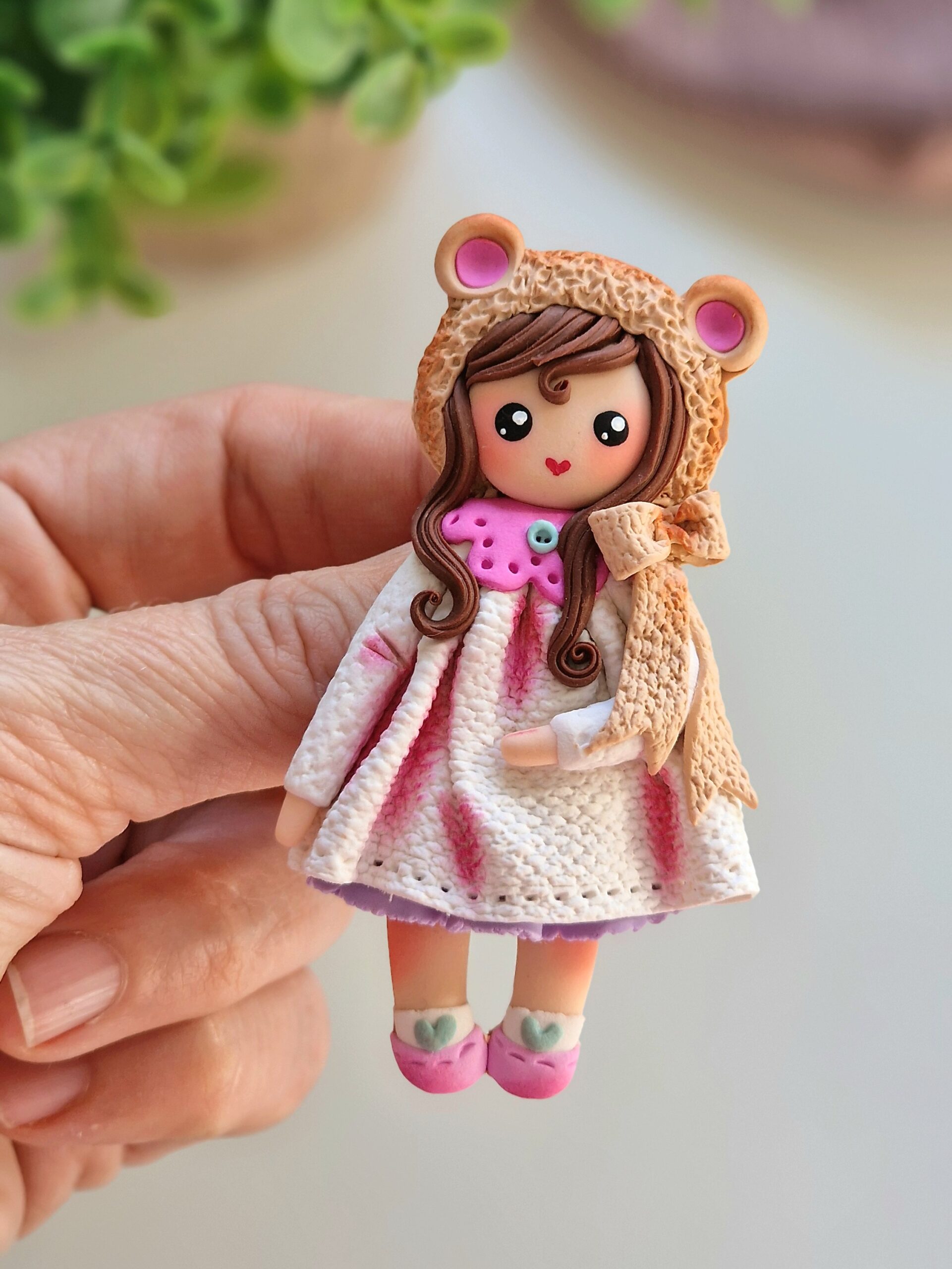 Broșa Dollme este modelată și pictată exclusiv manual.